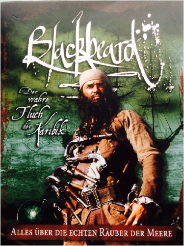Wer war Blackbeard? Blackbeard hieß mit richtigem Namen Edward Teach, (um 1680 bis 1718) und war englischer Pirat. Er war gefürchtet und berüchtigt für seine Überfälle und Gräueltaten auf den Westindischen Inseln und an den Küsten von North Carolina und Virginia. Er pflegte sein Image durch seine furchteinflößenden Auftritte mit langen, schwarzen Haaren und geflochtenem Bart, glühenden und rauchenden Lunten, die er unter dem Hut befestigte sowie mit mehrere Waffen |