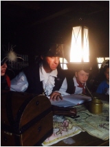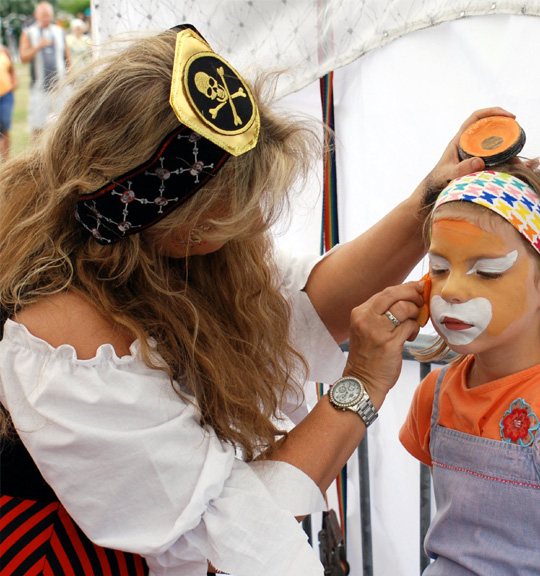 Zuständig auch für`s Wunden schminken und Tattoos.
