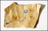 Mit Hilfe einer Schatzkarte soll man, ganz klar, einen versteckten Schatz aufstöbern können. Dazu muss man die nähere Umgebung und das Versteck durch Bilder, Zeichen oder geheime Codes verschlüsseln. Natürlich darf es nicht zu einfach sein, den Lageort des Schatzes zu finden. Sonst könnte, wenn die Karte in die falschen Hände gerät, jeder sofort die Beute heben. Für eine Schnitzeljagd oder ein Piratenfest ist es aber gar nicht so schwer, sich selber eine richtige Piratenschatzkarte zu basteln.